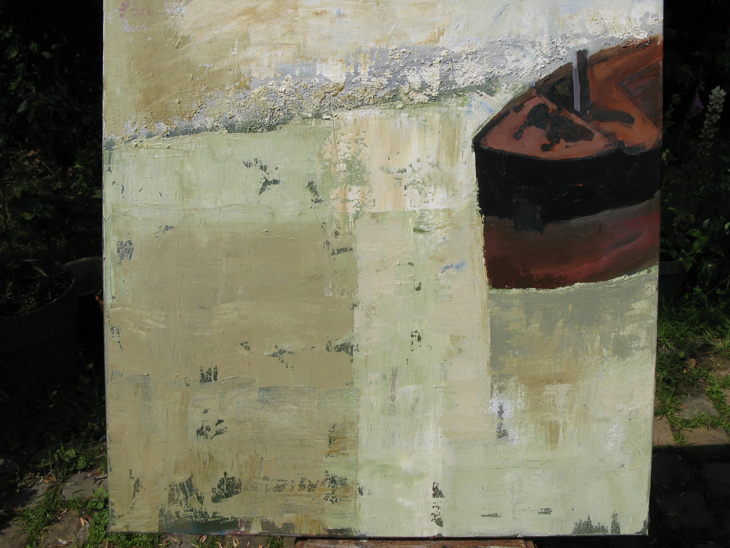 Katharina's schilderijen, die meestal van groot formaat zijn, gaan over sluiers van kleur op het zand van stranden, briesjes, alles in de zilte geur van de Noordzee.
