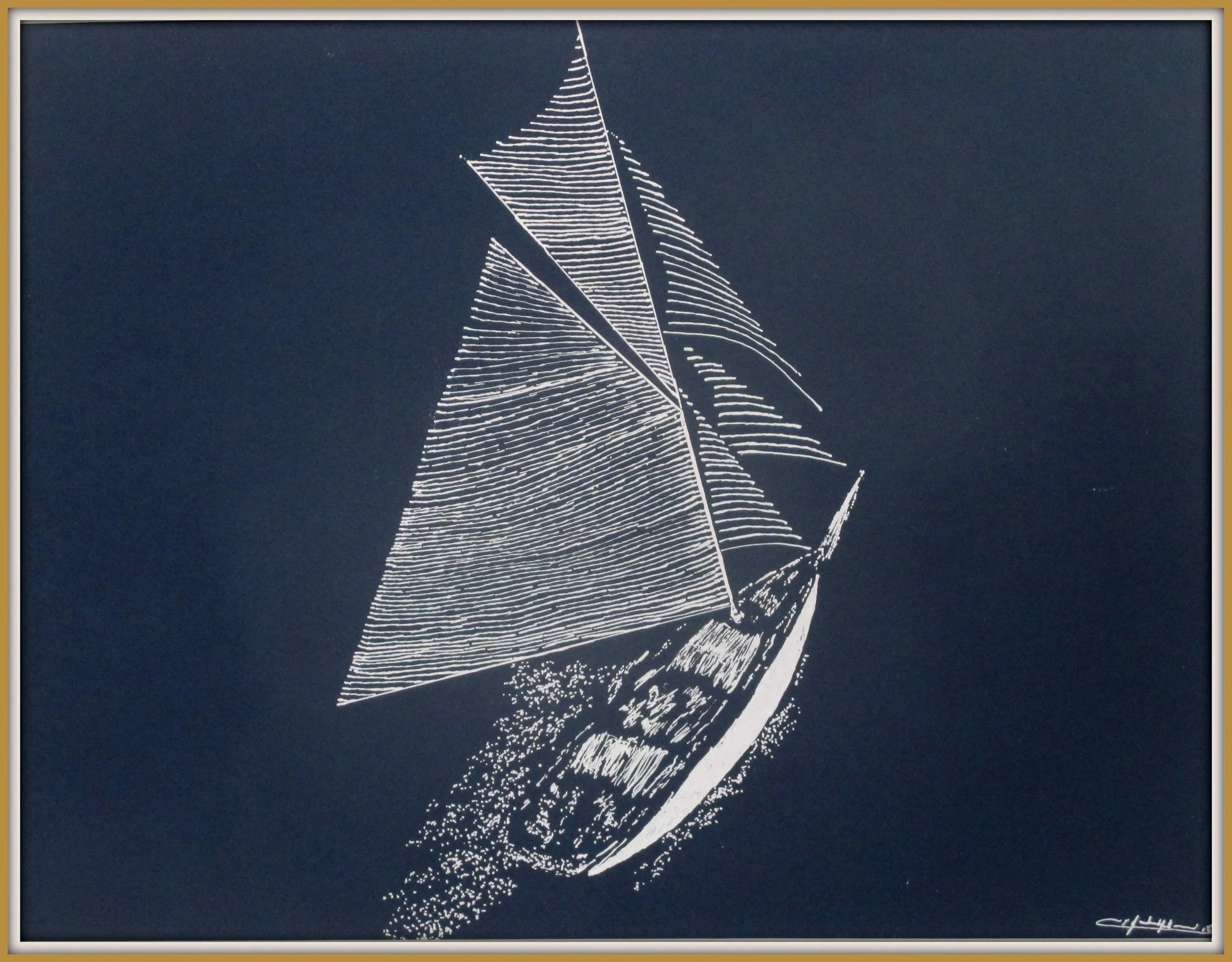 Frans schilder, voormalig lid van de "Frère de la Côte" broederschap, woonachtig aan de oevers van de Morbihan in Bretagne, gepassioneerd door zeilen en oude zeilschepen.