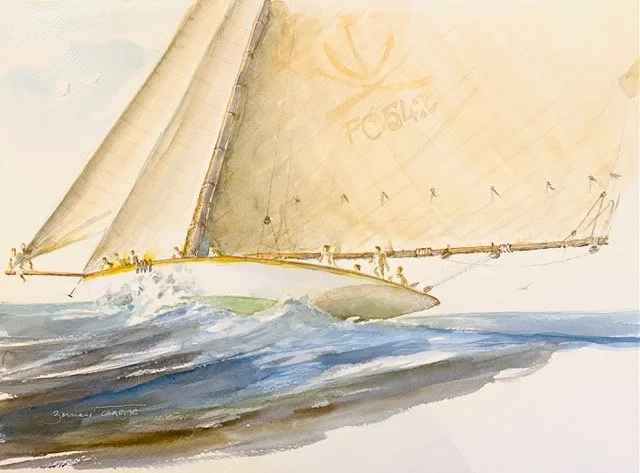 Maar het was tijdens een tussenstop in Saint Tropez dat hij aquarel ontdekte. Het licht van de Midi, het water, de zee, de stroom van het leven... daarna Bretagne, de zee, het water, altijd het water. De magie van de Vieux Gréements fascineert hem. Eigenlijk alle boten en varen op het water. Het is deze prachtige natuur die ons omringt, de sfeer van kleine havens, de sfeer van de Atlantische Oceaan, West-Indië, de gletsjers van Patagonië.